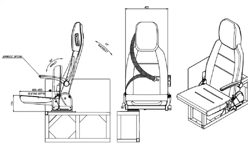 Apeiron DC M1 ambulans koltuğu, sırt dayanağına dayalı olarak tasarlanmış ve üretilmiştir.