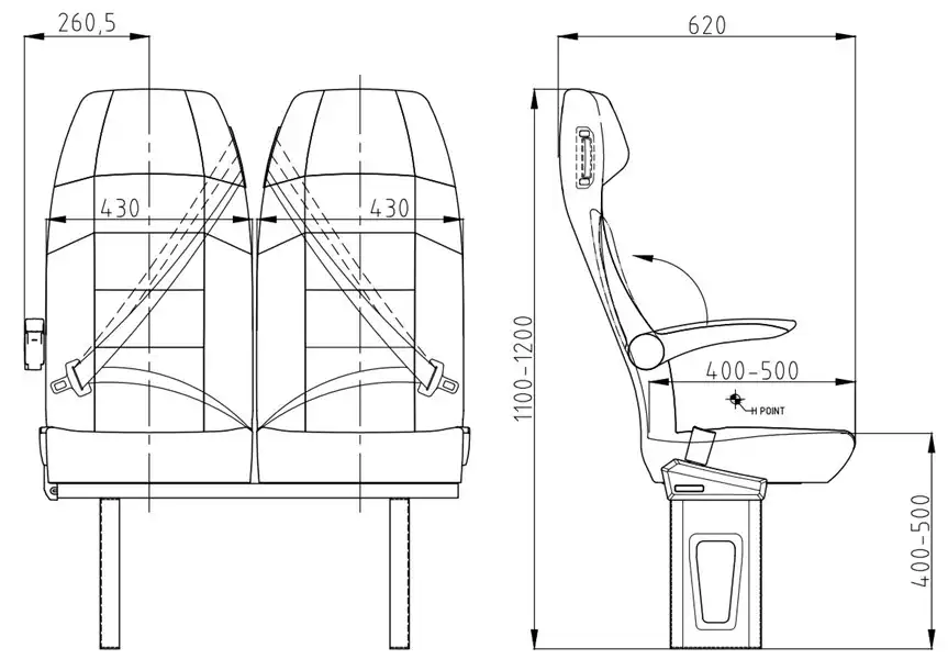 © 430mm genişliğinde benzersiz metal sabit sırt dayanağına dayanılarak üretilmiştir